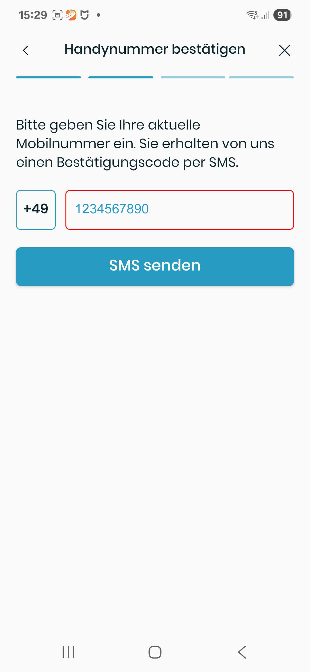 - Mobilfunknummer hinterlegen und den Bestätigungscode, den Sie per SMS erhalten haben, eingeben,
